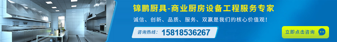 錦鵬廚具是一家專業從事星級酒樓、食堂、學校、餐廳、工廠、機關、醫院等商用中央廚房設備工程設計售后維修保養為一體的現代化企業,廚具設備廠家。承接不銹鋼廚房廚具、酒店廚房設備工程、不銹鋼廚房設備工程、商用廚房工程設計及制冷制熱系統工程。業務范圍覆蓋廣州、深圳、東莞、佛山、惠州等地,公司依據客戶要求和現場實際情況精心設計,合理安排,創造節(jié)能環(huán)保優(yōu)質產品和熱情服務。